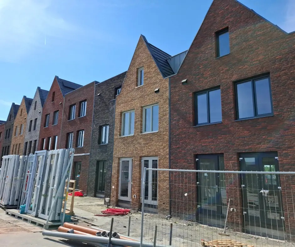 Bij de eerste vier herenhuizen ligt de focus inmiddels op de afbouw. Er is gewerkt aan tegel- en stucwerk, afbouwtimmerwerk, en het plaatsen van buitenkozijnen en beglazing. Ook op zolder wordt al gewerkt: daar zijn de eerste metal studwanden geplaatst.