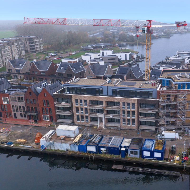 Inmiddels is het grootste gedeelte van het gevelmetselwerk uitgevoerd. Ook bij de penthouses zijn flinke stappen gezet: de gevels zijn voorzien van kozijnen, beglazing en gevelafwerking. Bij de overige appartementen worden de kozijnen en ramen geplaatst.